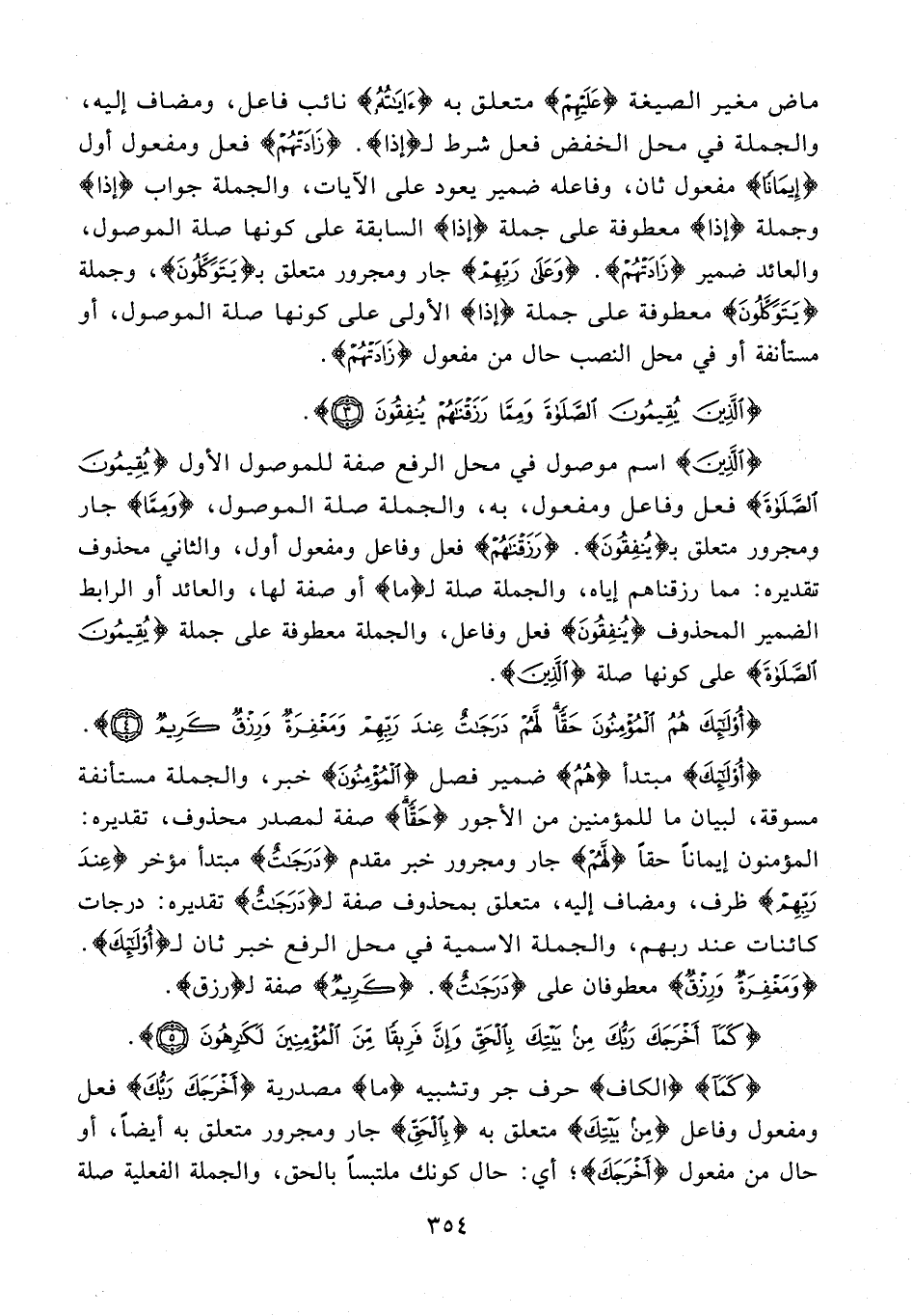 {كَما} {الكاف} حرف جر وتشبيه {ما} مصدرية {أَخْرَجَكَ رَبُّكَ} فعل ومفعول وفاعل {مِنْ بَيْتِكَ} متعلق به {بِالْحَقِّ} جار ومجرور متعلق به أيضا، أو حال من مفعول {أَخْرَجَكَ}؛ أي: حال كونك ملتبسا بالحق، والجملة الفعلية صلة