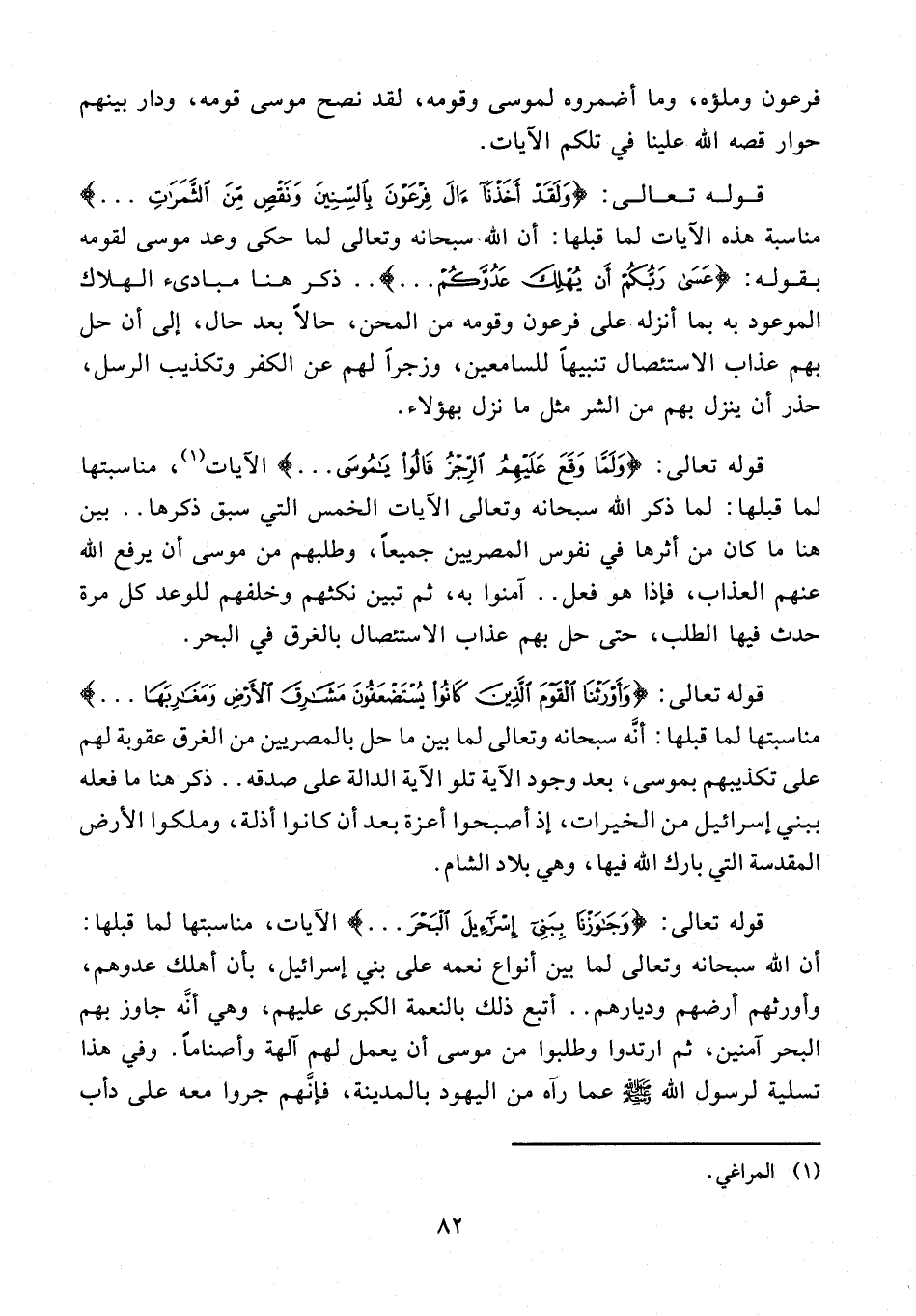 قوله تعالى: {وَجاوَزْنا بِبَنِي إِسْرائِيلَ الْبَحْرَ ...} الآيات، مناسبتها لما قبلها: أن الله سبحانه وتعالى لما بين أنواع نعمه على بني إسرائيل، بأن أهلك عدوهم، وأورثهم أرضهم وديارهم .. أتبع ذلك بالنعمة الكبرى عليهم، وهي أنّه جاوز بهم البحر آمنين، ثم ارتدوا وطلبوا من موسى أن يعمل لهم آلهة وأصناما. وفي هذا تسلية لرسول الله صلى الله عليه وسلّم عما رآه من اليهود بالمدينة، فإنّهم جروا معه على دأب