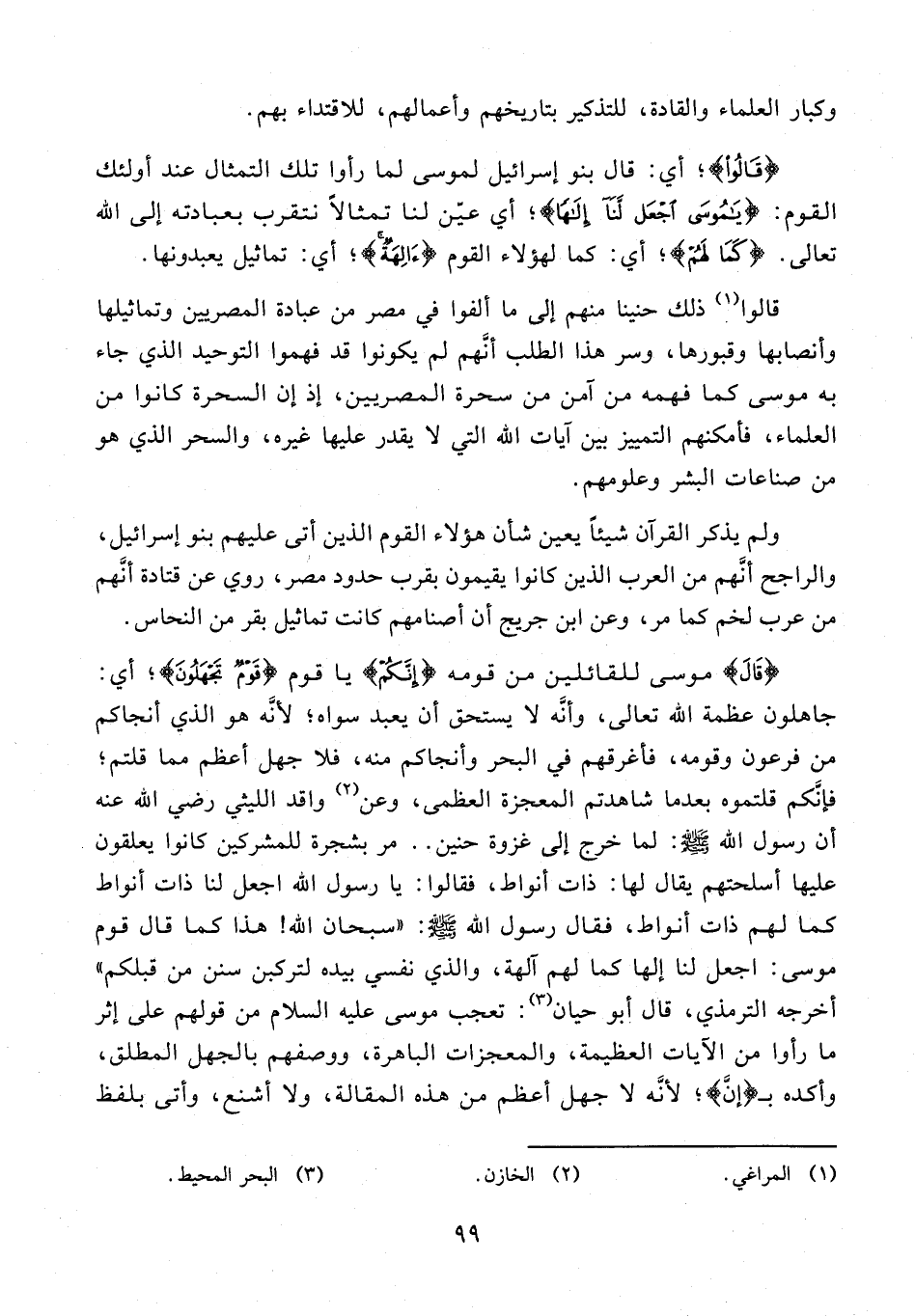 قالوا (¬1) ذلك حنينا منهم إلى ما ألفوا في مصر من عبادة المصريين وتماثيلها وأنصابها وقبورها، وسر هذا الطلب أنّهم لم يكونوا قد فهموا التوحيد الذي جاء به موسى كما فهمه من آمن من سحرة المصريين، إذ إن السحرة كانوا من العلماء، فأمكنهم التمييز بين آيات الله التي لا يقدر عليها غيره، والسحر الذي هو من صناعات البشر وعلومهم.