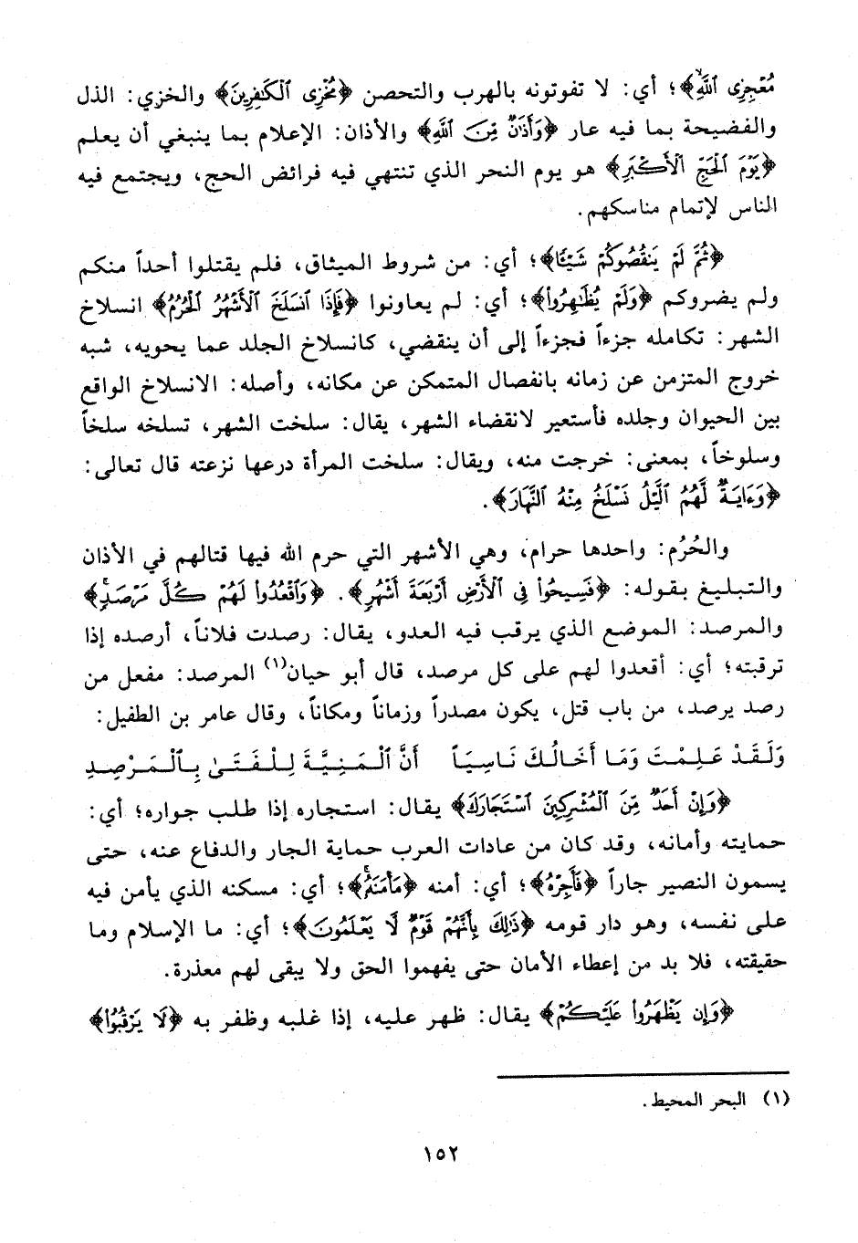 {ثُمَّ لَمْ يَنْقُصُوكُمْ شَيْئًا}؛ أي: من شروط الميثاق، فلم يقتلوا أحدًا منكم ولم يضروكم {وَلَمْ يُظَاهِرُوا}؛ أي: لم يعاونوا {فَإِذَا انْسَلَخَ الْأَشْهُرُ الْحُرُمُ} انسلاخ الشهر: تكامله جزءًا فجزءًا إلى أن ينقضي، كانسلاخ الجلد عما يحويه، شبه خروج المتزمن عن زمانه بانفصال المتمكن عن مكانه، وأصله: الانسلاخ الواقع بين الحيوان وجلده فأستعير لانقضاء الشهر، يقال: سلخت الشهر، تسلخه سلخًا وسلوخًا، بمعنى: خرجت منه، ويقال: سلخت المرأة درعها نزعته قال تعالى: {وَآيَةٌ لَهُمُ اللَّيْلُ نَسْلَخُ مِنْهُ النَّهَارَ}.