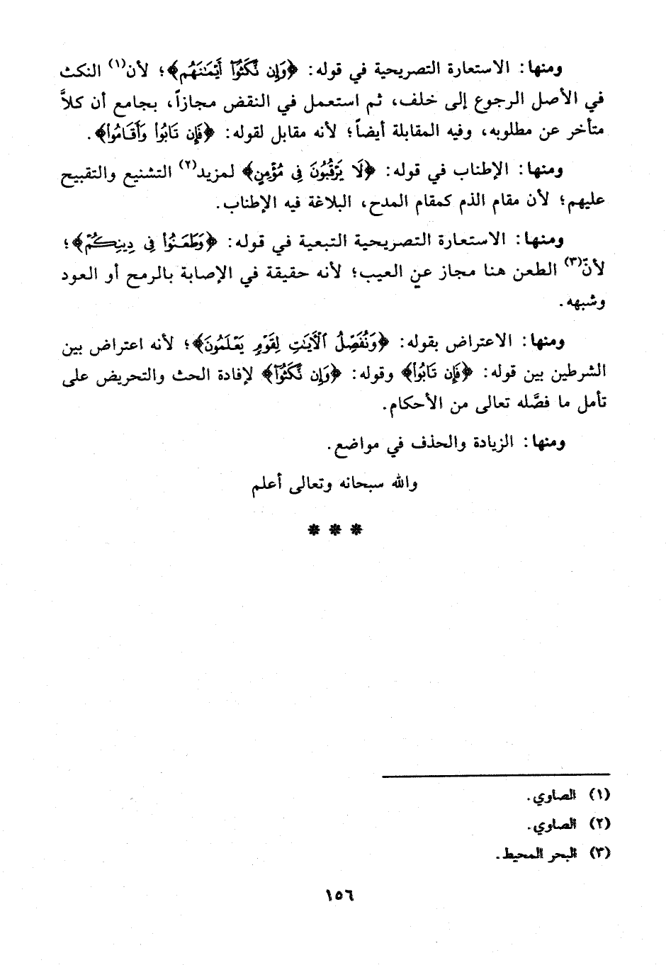 ومنها: الاستعارة التصريحية التبعية في قوله: {وَطَعَنُوا فِي دِينِكُمْ}؛ لأنّ (¬3) الطعن هنا مجاز عن العيب؛ لأنه حقيقة في الإصابة بالرمح أو العود وشبهه.