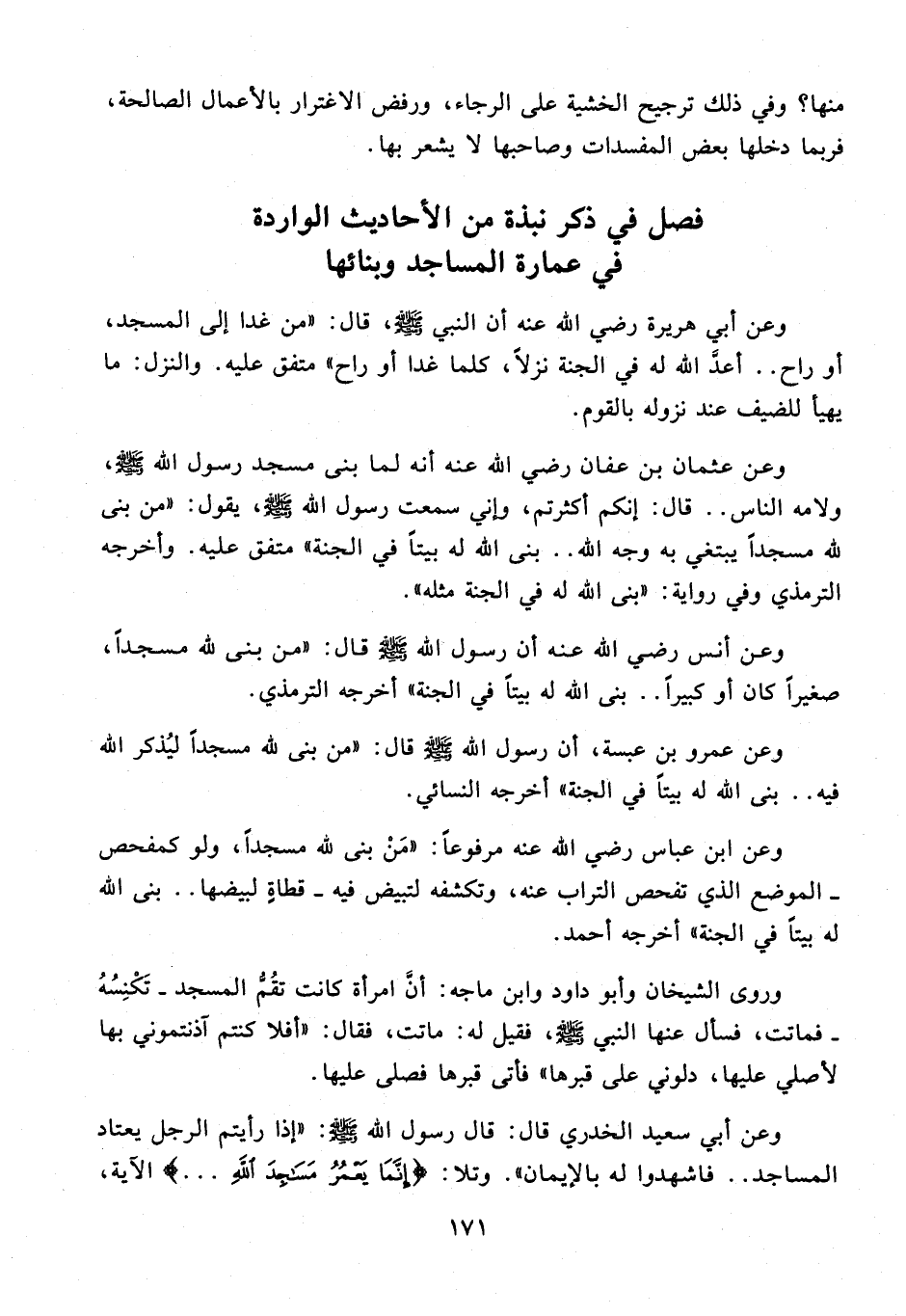 فصل في ذكر نبذة من الأحاديث الواردة في عمارة المساجد وبنائها