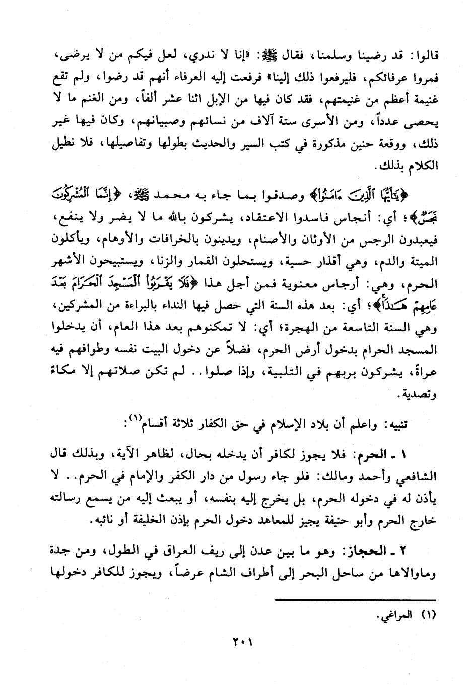 2 - الحجاز: وهو ما بين عدن إلى ريف العراق في الطول، ومن جدة وما والاها من ساحل البحر إلى أطراف الشام عرضًا، ويجوز للكافر دخولها