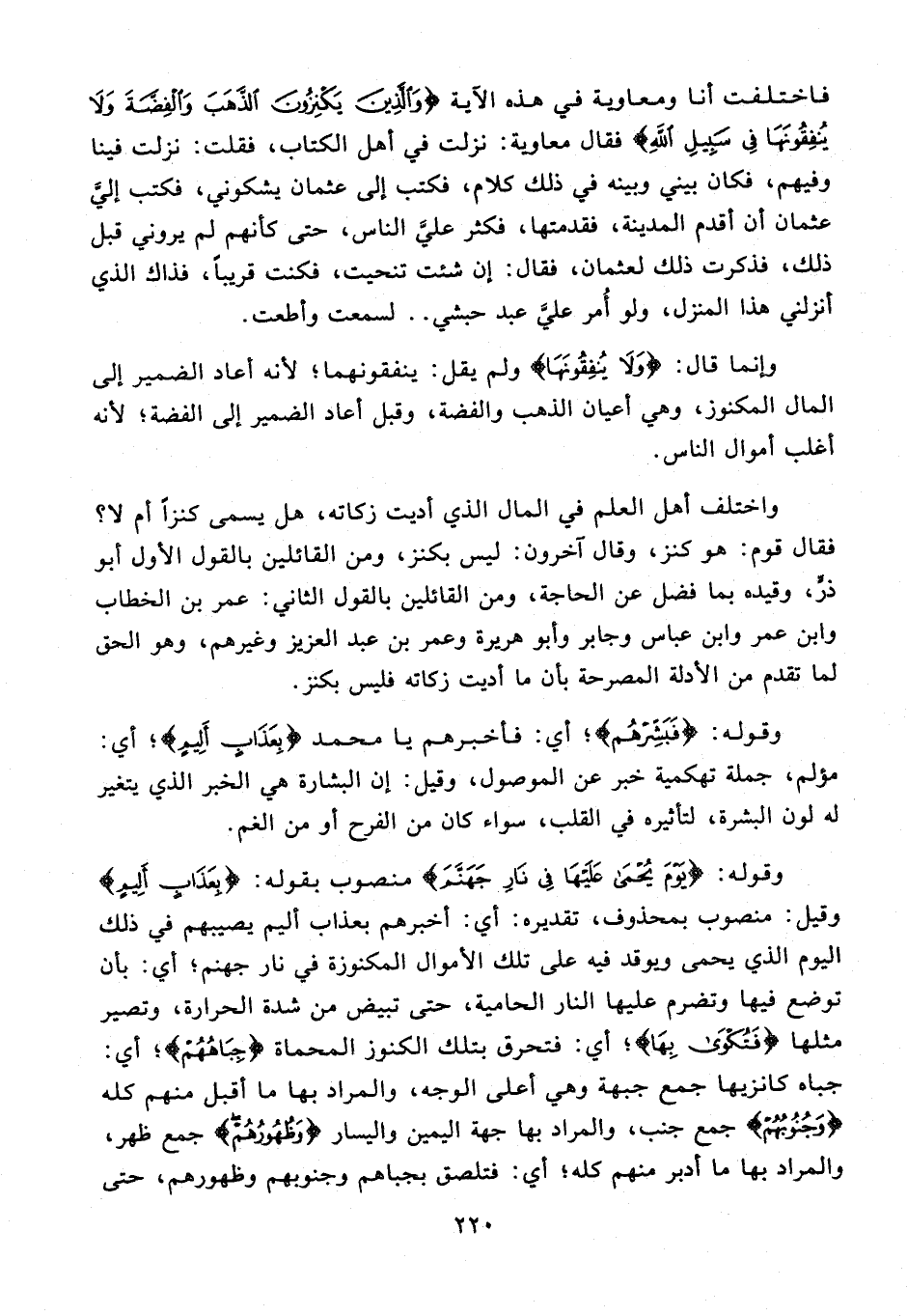 واختلف أهل العلم في المال الذي أديت زكاته، هل يسمى كنزًا أم لا؟ فقال قوم: هو كنز، وقال آخرون: ليس بكنز، ومن القائلين بالقول الأول أبو ذرٍّ، وقيده بما فضل عن الحاجة، ومن القائلين بالقول الثاني: عمر بن الخطاب وابن عمر وابن عباس وجابر وأبو هريرة وعمر بن عبد العزيز وغيرهم، وهو الحق لما تقدم من الأدلة المصرحة بأن ما أديت زكاته فليس بكنز.