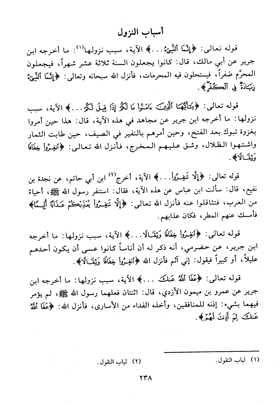 قوله تعالى: {إِنَّمَا النَّسِيءُ ...} الآية، سبب نزولها (¬1): ما أخرجه ابن جرير عن أبي مالك، قال: كانوا يجعلون السنة ثلاثة عشر شهرًا، فيجعلون المحرَّم صَفرًا، فيستحلون فيه المحرمات، فأنزل الله سبحانه وتعالى: {إِنَّمَا النَّسِيءُ زِيَادَةٌ فِي الْكُفْرِ}.