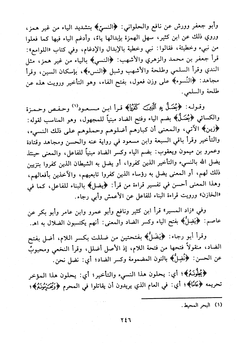 وفي "زاد المسير" قرأ ابن كثير ونافع وأبو عمرو وابن عامر وأبو بكر عن عاصم: {يَضِلُّ} بفتح الياء وكسر الضاد والمعنى: أنهم يكتسبون الضلال به اهـ.