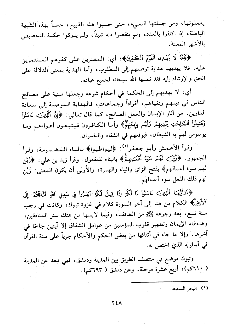 38 - {يَا أَيُّهَا الَّذِينَ آمَنُوا مَا لَكُمْ إِذَا قِيلَ لَكُمُ انْفِرُوا فِي سَبِيلِ اللَّهِ اثَّاقَلْتُمْ إِلَى الْأَرْضِ} الكلام من هنا إلى آخر السورة كلام في غزوة تبوك، وكانت في رجب سنة تسع، بعد رجوعه - صلى الله عليه وسلم - من الطائف، وفيما لابسها من هتك ستر المنافقين، وضعفاء الإيمان وتطهير قلوب المؤمنين من عوامل الشقاق إلا آيتين جاءتا في آخرها، وإلا ما جاء في أثنائها من بعض الحكم والأحكام جريًا على سنة القرآن في أسلوبه الذي اختص به.