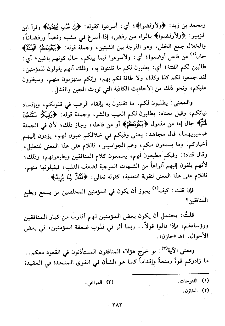 ومعنى الآية (¬3): لو خرج هؤلاء المنافقون المستأذنون في القعود معكم .. ما زادوكم قوةً ومنعةً وإقدامًا كما هو الشأن في القوى المتحدة في العقيدة