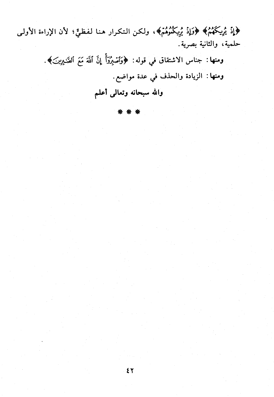 {إذْ يُرِيكَهُمُ} {وَإِذْ يُرِيكُمُوهُمْ}، ولكن التكرار هنا لفظيٌّ؛ لأن الإراءة الأولى حلمية، والثانية بصرية.