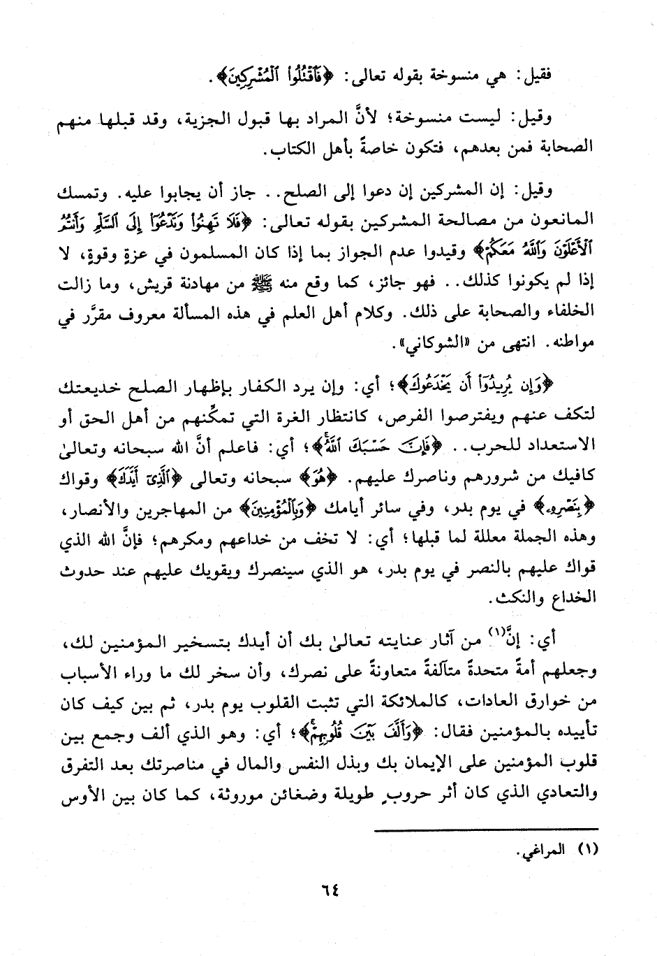 وقيل: ليست منسوخة؛ لأنَّ المراد بها قبول الجزية، وقد قبلها منهم الصحابة فمن بعدهم، فتكون خاصةً بأهل الكتاب.