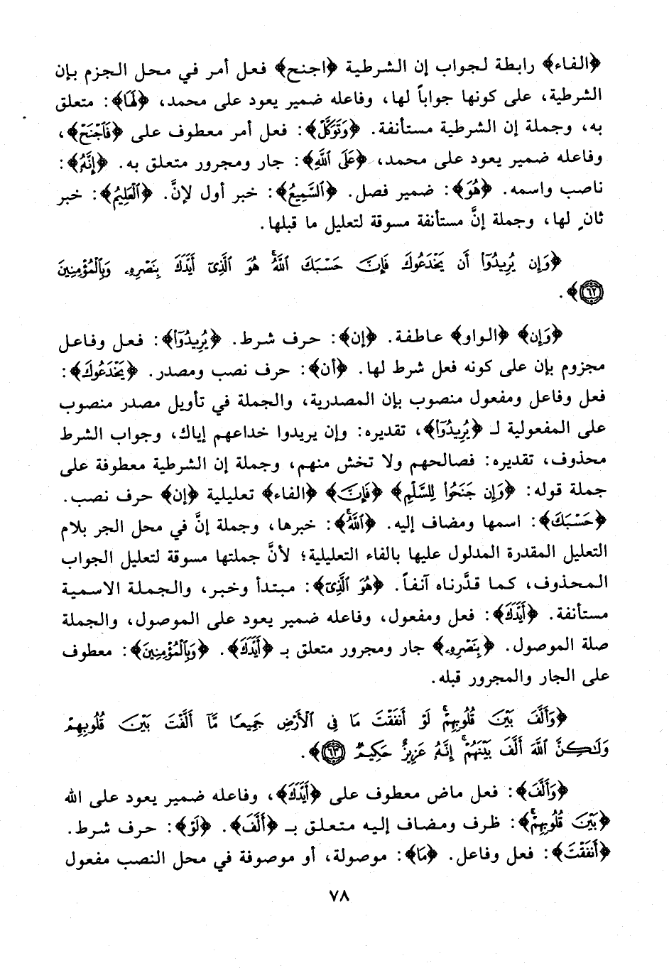 {وَأَلَّفَ}: فعل ماض معطوف على {أَيَّدَكَ}، وفاعله ضمير يعود على الله {بَيْنَ قُلُوبِهِمْ}: ظرف ومضاف إليه متعلق بـ {أَلَّفَ}. {لَوْ}: حرف شرط. {أَنْفَقْتَ}: فعل وفاعل. {مَا}: موصولة، أو موصوفة في محل النصب مفعول