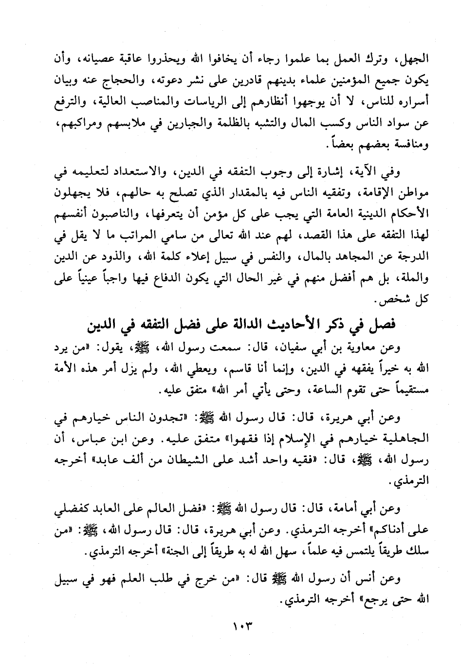 فصل في ذكر الأحاديث الدالة على فضل التفقه في الدين