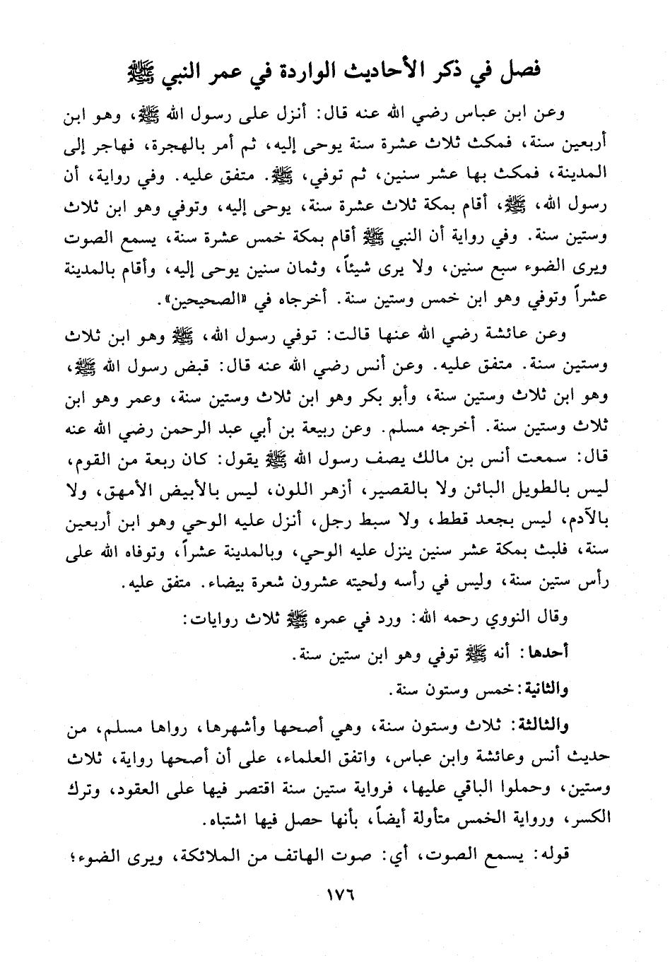 وقال النووي رحمه الله: ورد في عمره - صلى الله عليه وسلم - ثلاث روايات: