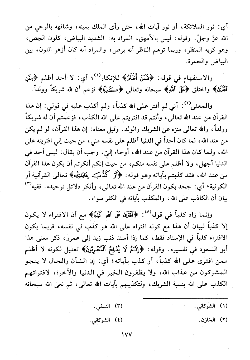 وإنما زاد كذبًا في قوله (¬4): {افْتَرَى عَلَى اللَّهِ كَذِبًا} مع أن الافتراء لا يكون إلا كذبًا لبيان أن هذا مع كونه افتراء على الله هو كذب في نفسه، فربما يكون الافتراء كذبًا في الإسناد فقط، كما إذا أسند ذنب زيد إلى عمرو، ذكر معنى هذا أبو السعود في تفسيره. وقوله: {إِنَّهُ لَا يُفْلِحُ الْمُجْرِمُونَ} تعليل لكونه لا أظلم ممن افترى على الله كذبًا، أو كذب بآياته؛ أي: إن الشأن والحال لا ينجو المشركون من عذاب الله، ولا يظفرون الخير في الدنيا والآخرة، لافترائهم الكذب على الله بنسبة الشريك، ولتكذيبهم بآيات الله تعالى،