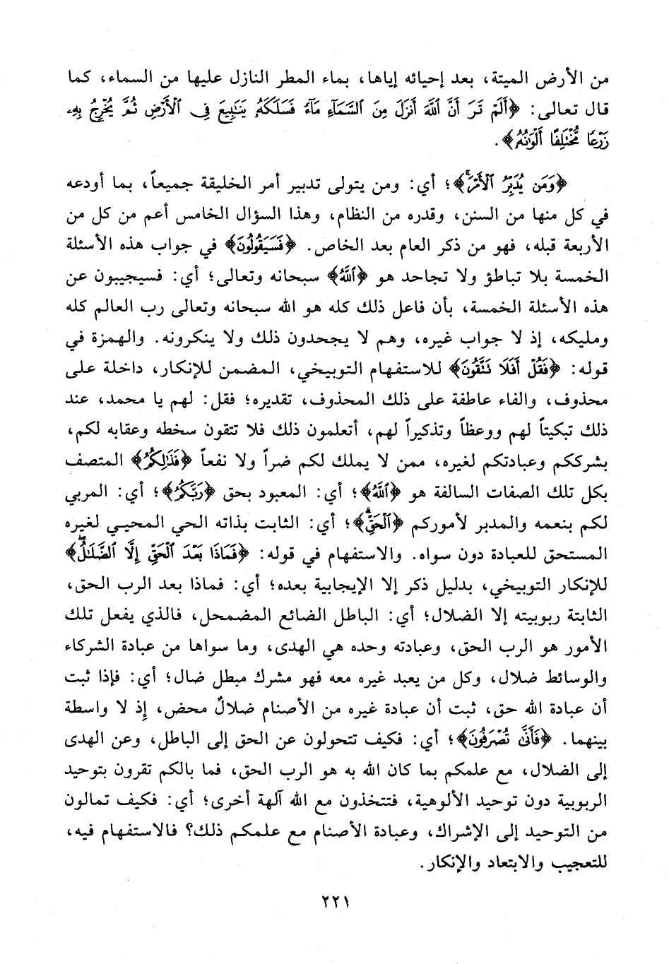 32 - {فَذَلِكُمُ} المتصف بكل تلك الصفات السالفة هو {اللَّهُ}؛ أي: المعبود بحق {رَبُّكُمُ}؛ أي: المربي لكم بنعمه والمدبر لأموركم {الْحَقُّ}؛ أي: الثابت بذاته الحي المحيي لغيره المستحق للعبادة دون سواه. والاستفهام في قوله: {فَمَاذَا بَعْدَ الْحَقِّ إِلَّا الضَّلَالُ} للإنكار التوبيخي، بدليل ذكر إلا الإيجابية بعده؛ أي: فماذا بعد الرب الحق، الثابتة ربوبيته إلا الضلال؛ أي: الباطل الضائع المضمحل، فالذي يفعل تلك الأمور هو الرب الحق، وعبادته وحده هي الهدى، وما سواها من عبادة الشركاء والوسائط ضلال، وكل من يعبد غيره معه فهو مشرك مبطل ضال؛ أي: فإذا ثبت أن عبادة الله حق، ثبت أن عبادة غيره من الأصنام ضلالٌ محض، إِذ لا واسطة بينهما. {فَأَنَّى تُصْرَفُونَ}؛ أي: فكيف تتحولون عن الحق إلى الباطل، وعن الهدى إلى الضلال، مع علمكم بما كان الله به هو الرب الحق، فما بالكم تقرون بتوحيد الربوبية دون توحيد الألوهية، فتتخذون مع الله آلهة أخرى؛ أي: فكيف تمالون من التوحيد إلى الإشراك، وعبادة الأصنام مع علمكم ذلك؟ فالاستفهام فيه، للتعجيب والابتعاد والإنكار.