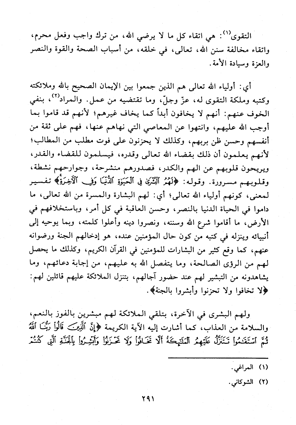 التقوى (¬1): هي اتقاء كل ما لا يرضي الله، من ترك واجب وفعل محرم، واتقاء مخالفة سنن الله، تعالى، في خلقه، من أسباب الصحة والقوة والنصر والعزة وسيادة الأمة.