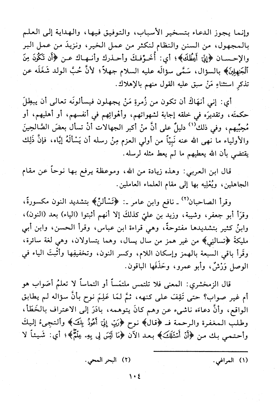 قال ابن العربي: وهذه زيادة من الله، وموعظة يرفع بها نوحًا عن مقام الجاهلين، ويُعْلِيه بها إلى مقام العلماء العاملين.