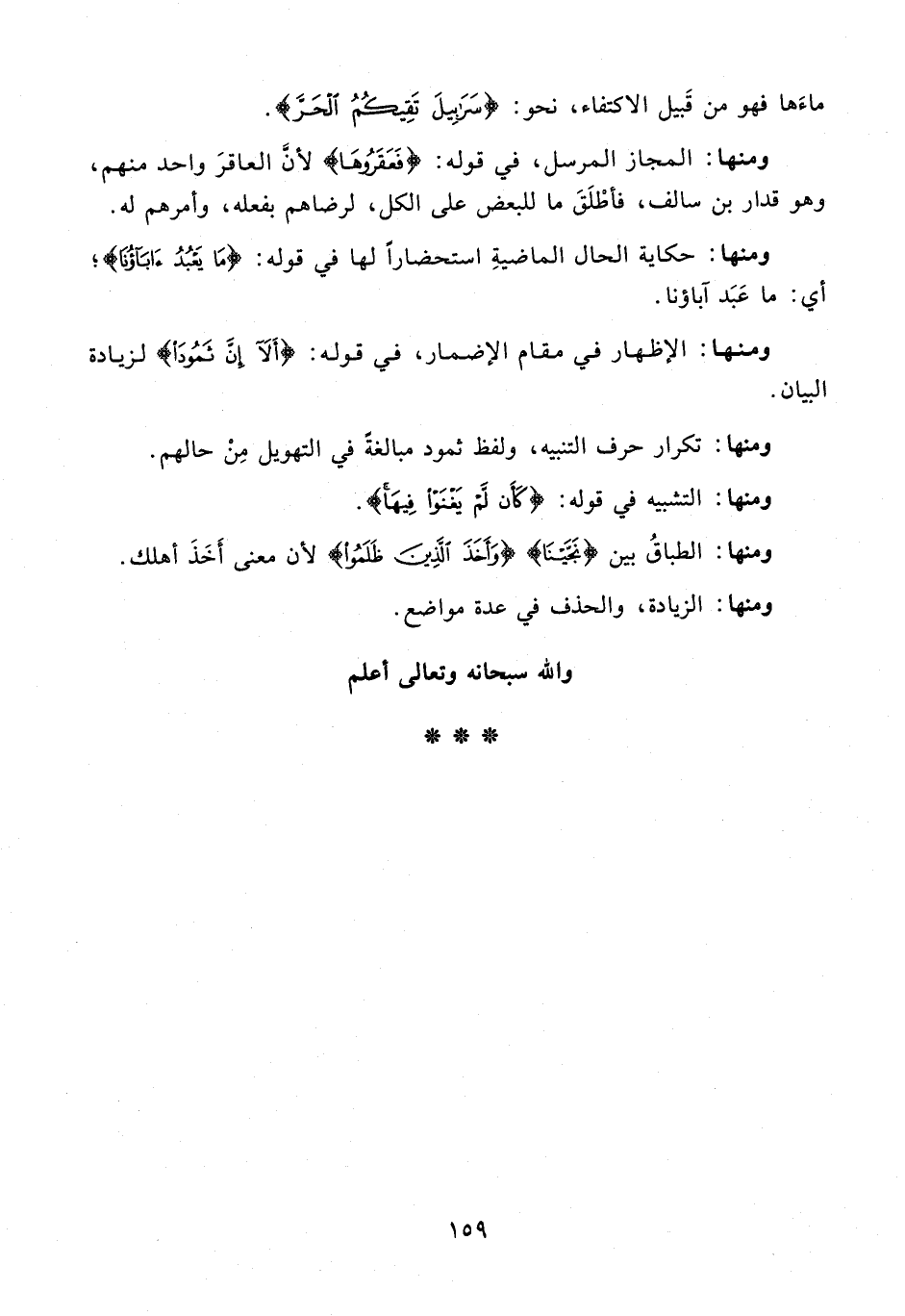 ومنها: المجاز المرسل، في قوله: {فَعَقَرُوهَا} لأنَّ العاقرَ واحد منهم، وهو قدار بن سالف، فأطْلَقَ ما للبعض على الكل، لرضاهم بفعله، وأمرهم له.