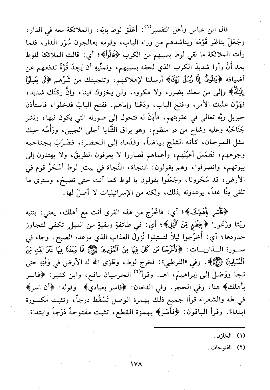 {فَأَسْرِ بِأَهْلِكَ}؛ أي: فاخْرُج من هذه القرى أنت مع أهلك، يعني: بنتيه ريْثا وزَعُورا {بِقِطْعٍ مِنَ اللَّيْلِ}؛ أي: في طائفةٍ وبقيةٍ من الليلِ تكفي لتجاوز حدودها؛ أي: أُخرُجوا ليلًا لتستبقوا نُزولَ العذاب الذي موعده الصبح. وجاء في سورة الذاريات: {فَأَخْرَجْنَا مَنْ كَانَ فِيهَا مِنَ الْمُؤْمِنِينَ (35) فَمَا وَجَدْنَا فِيهَا غَيْرَ بَيْتٍ مِنَ الْمُسْلِمِينَ (36)}. وفي "القرطبي": فخرج لوط، وطَوَى الله له الأرض في وَقْتِهِ حتى نجا ووَصلَ إلى إبراهيمَ، اهـ. وقرأ (¬2) الحرميان نافع، وابن كثير: {فاسر بأهلك} هنا، وفي الحجر، وفي الدخان: {فاسر بعبادي}. وقوله: (أن اسر} في طه والشعراء قرأ جميع ذلك بهمزة الوصل تَسْقُط درجًا، وتثبت مكسورة ابتداءً. وقرأ الباقون: {فأَسْر} بهمزة القطع، تثبت مفتوحةً دَرَجًا وابتداءً.