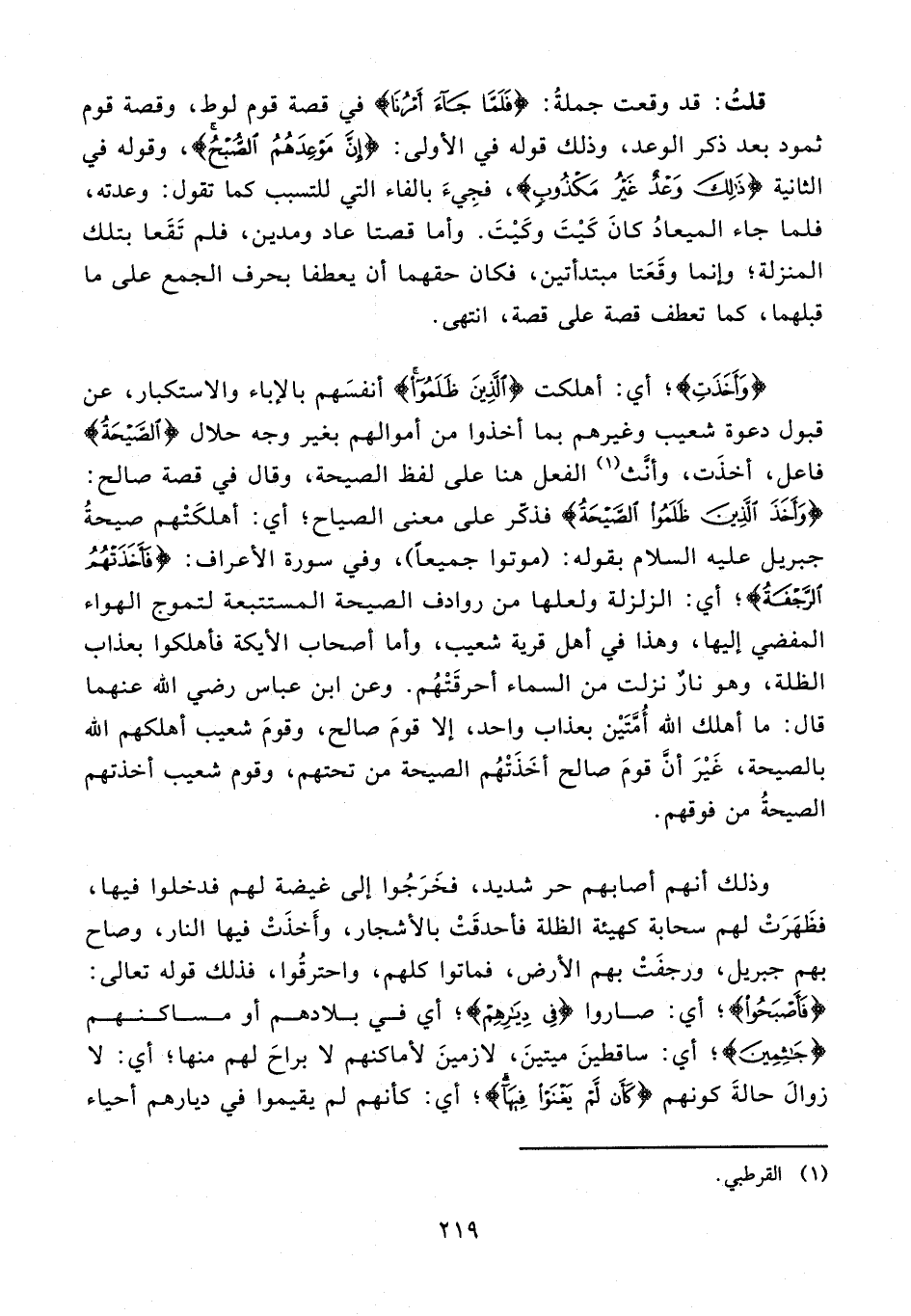 {وَأَخَذَتِ}؛ أي: أهلكت {الَّذِينَ ظَلَمُوا} أنفسَهم بالإباء والاستكبار، عن قبول دعوة شعيب وغيرهم بما أخذوا من أموالهم بغير وجه حلال {الصَّيْحَةُ} فاعل، أخذَت، وأنَّث (¬1) الفعل هنا على لفظ الصيحة، وقال في قصة صالح: {وَأَخَذَ الَّذِينَ ظَلَمُوا الصَّيْحَةُ} فذكّر على معنى الصياح؛ أي: أهلكَتْهم صيحةُ جبريل عليه السلام بقوله: (موتوا جميعًا)، وفي سورة الأعراف: {فَأَخَذَتْهُمُ الرَّجْفَةُ}؛ أي: الزلزلة ولعلها من روادف الصيحة المستتبعة لتموج الهواء المفضي إليها، وهذا في أهل قرية شعيب، وأما أصحاب الأيكة فأهلكوا بعذاب الظلة، وهو نارٌ نزلت من السماء أحرقَتْهُم. وعن ابن عباس رضي الله عنهما قال: ما أهلك الله أُمَّتَيْن بعذاب واحد، إلا قومَ صالح، وقومَ شعيب أهلكهم الله بالصيحة، غَيْرَ أنَّ قومَ صالح أخَذَتْهُم الصيحة من تحتهم، وقوم شعيب أخذتهم الصيحةُ من فوقهم.