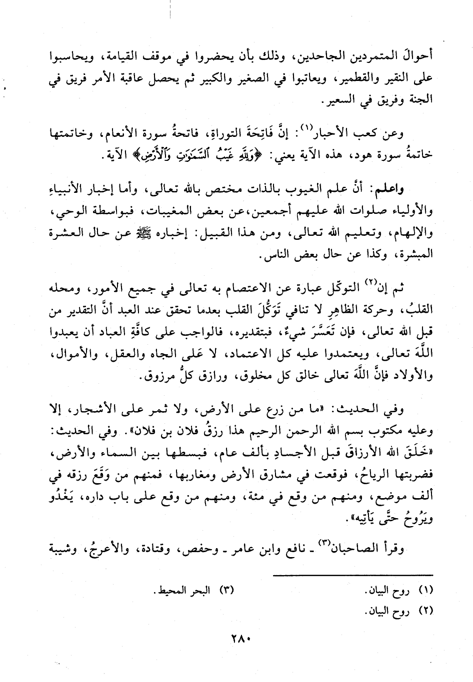وعن كعب الأحبار (¬1): إنَّ فَاتِحَةَ التوراةِ، فاتحةُ سورة الأنعام، وخاتمتها خاتمةُ سورة هود، هذه الآية يعني: {وَلِلَّهِ غَيْبُ السَّمَاوَاتِ وَالْأَرْضِ} الآية.