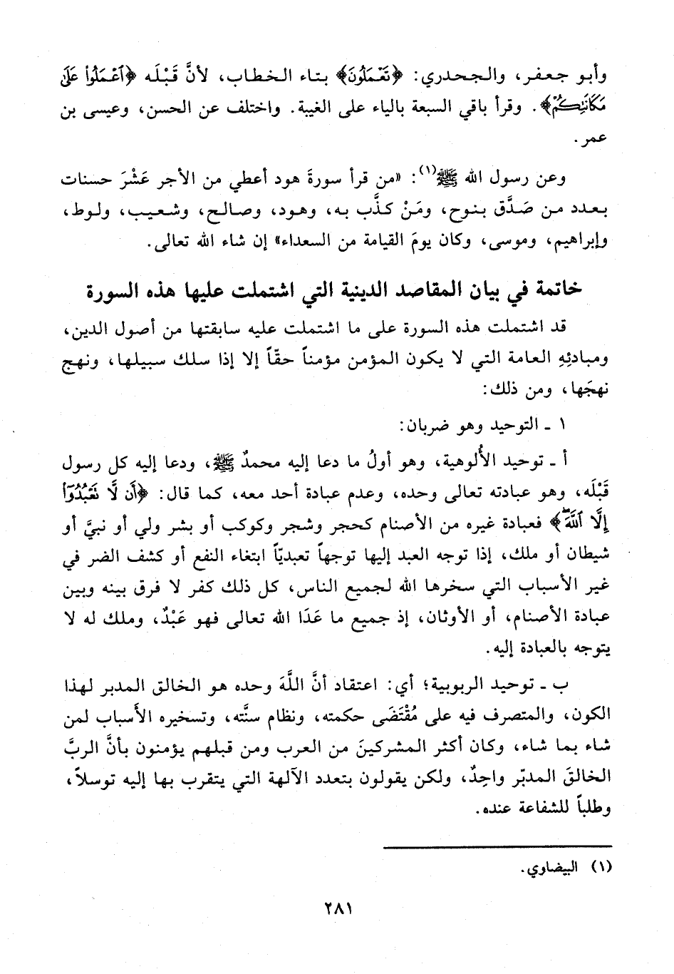 خاتمة في بيان المقاصد الدينية التي اشتملت عليها هذه السورة