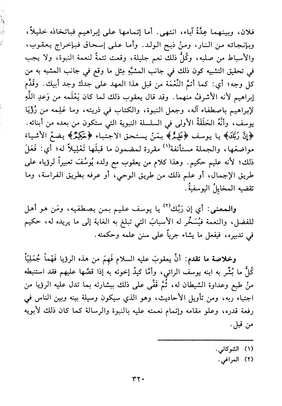 وخلاصة ما تقدم: أنَّ يعقوبَ عليه السلام فَهِمَ من هذه الرؤيا فَهْمًا جُمَلِيًّا كُلُّ ما بُشِّر به ابنه يوسف الرائي، وأمَّا كيدُ إخوته به إذا قصَّها عليهم فقد استنبطه منْ طبع وعداوة الشيطان له، ثُمَّ قَفَّى على ذلك ببشارته بما تدل عليه الرؤيا من اجتباء ربه، ومن تأويل الأحاديث، وهو الذي سيكون وسيلة بينه وبين الناس في رفعة قدره، وعلو مقامه وإتمام نعمته عليه بالنبوة والرسالة كما كان ذلك لأبويه من قبل.
