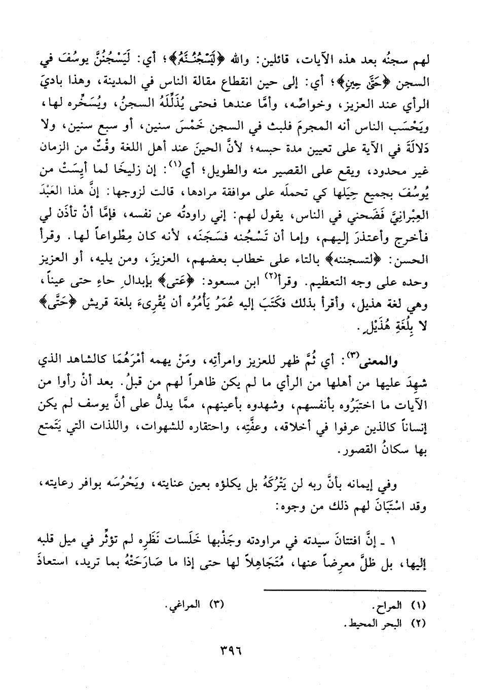 1 - إنَّ افتتانَ سيدته في مراودته وجَذْبها خَلَسات نَظَرِه لم تؤثِّر في ميل قلبه إيها، بل ظلَّ معرِضًا عنها، مُتَجَاهِلًا لها حتى إذا ما صَارَحَتْهُ بما تريد، استعاذَ