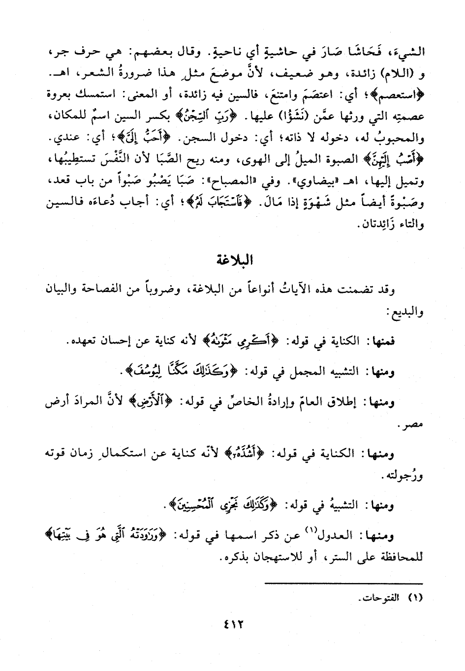 الشيءَ، فَحَاشَا صَارَ في حاشيةٍ أي ناحيةٍ. وقال بعضهم: هي حرف جر، و (اللام) زائدة، وهو ضعيف, لأنَّ موضعَ مثلِ هذا ضرورةُ الشعر، اهـ. {استعصم}؛ أي: اعتصَمَ وامتنعَ، فالسين فيه زائدة، أو المعنى: استمسك بعروة عصمتِه التي ورثها عمَّن (نَشَؤُا) عليها. {رَبِّ السِّجْنُ} بكسر السين اسمٌ للمكان، والمحبوبُ له، دخوله لا ذاته؛ أي: دخول السجن. {أَحَبُّ إِلَيَّ}؛ أي: عندي. {أَصْبُ إِلَيْهِنَّ} الصبوة الميلُ إلى الهوى، ومنه ريح الصَّبَا لأن النَّفْسَ تستطِيبُها، وتميل إليها، اهـ "بيضاوي". وفي "المصباح": صَبَا يَصْبُو صَبْوًا من باب قعد، وصَبْوةً أيضًا مثل شَهْوَةٍ إذا مَالَ. {فَاسْتَجَابَ لَهُ}؛ أي: أجاب دُعاءَه فالسين والتاء زَائِدتان.