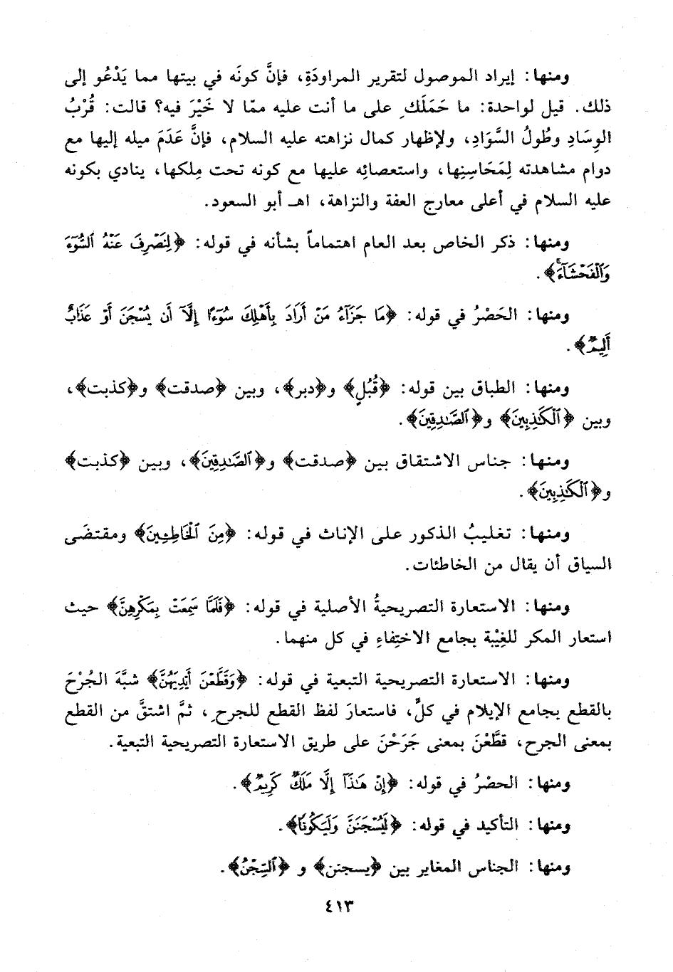 ومنها: الحصْرُ في قوله: {إِنْ هَذَا إِلَّا مَلَكٌ كَرِيمٌ}.