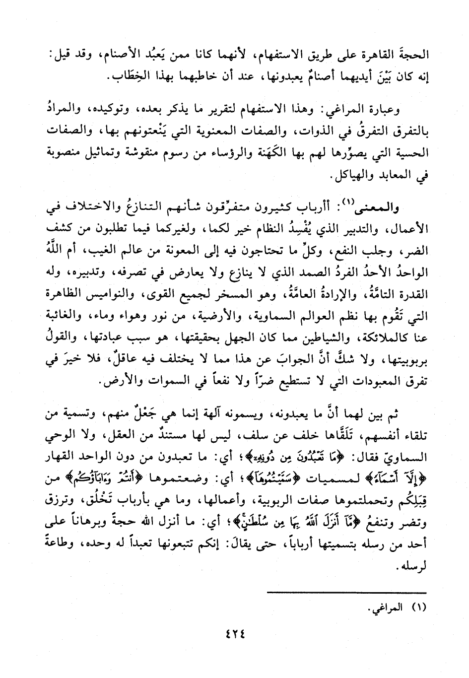وعبارة المراغي: وهذا الاستفهام لتقرير ما يذكر بعده، وتوكيده، والمرادُ بالتفرق التفرقُ في الذوات، والصفات المعنوية التي يَنْعتونهم بها، والصفات الحسية التي يصوِّرها لهم بها الكَهَنة والرؤساء من رسوم منقوشة وتماثيل منصوبة في المعابد والهياكل.