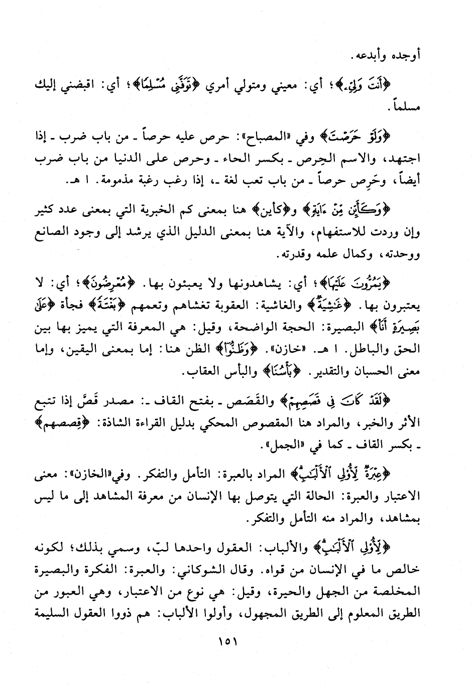 {لَقَدْ كَانَ فِي قَصَصِهِمْ} والقَصَص - بفتح القاف -: مصدر قَصَّ إذا تتبع الأثر والخبر، والمراد هنا المقصوص المحكي بدليل القراءة الشاذة: {قِصصهم} - بكسر القاف - كما في "الجمل".
