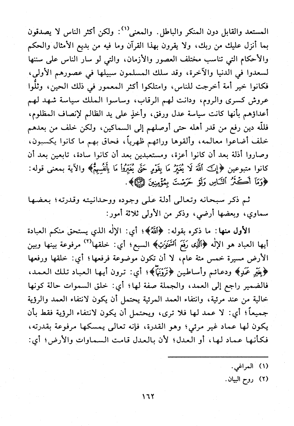 2 - ثم ذكر سبحانه وتعالى أدلة على وجوده ووحدانيته وقدرته؛ بعضها سماوي، وبعضها أرضي، وذكر من الأولى ثلاثة أمور: