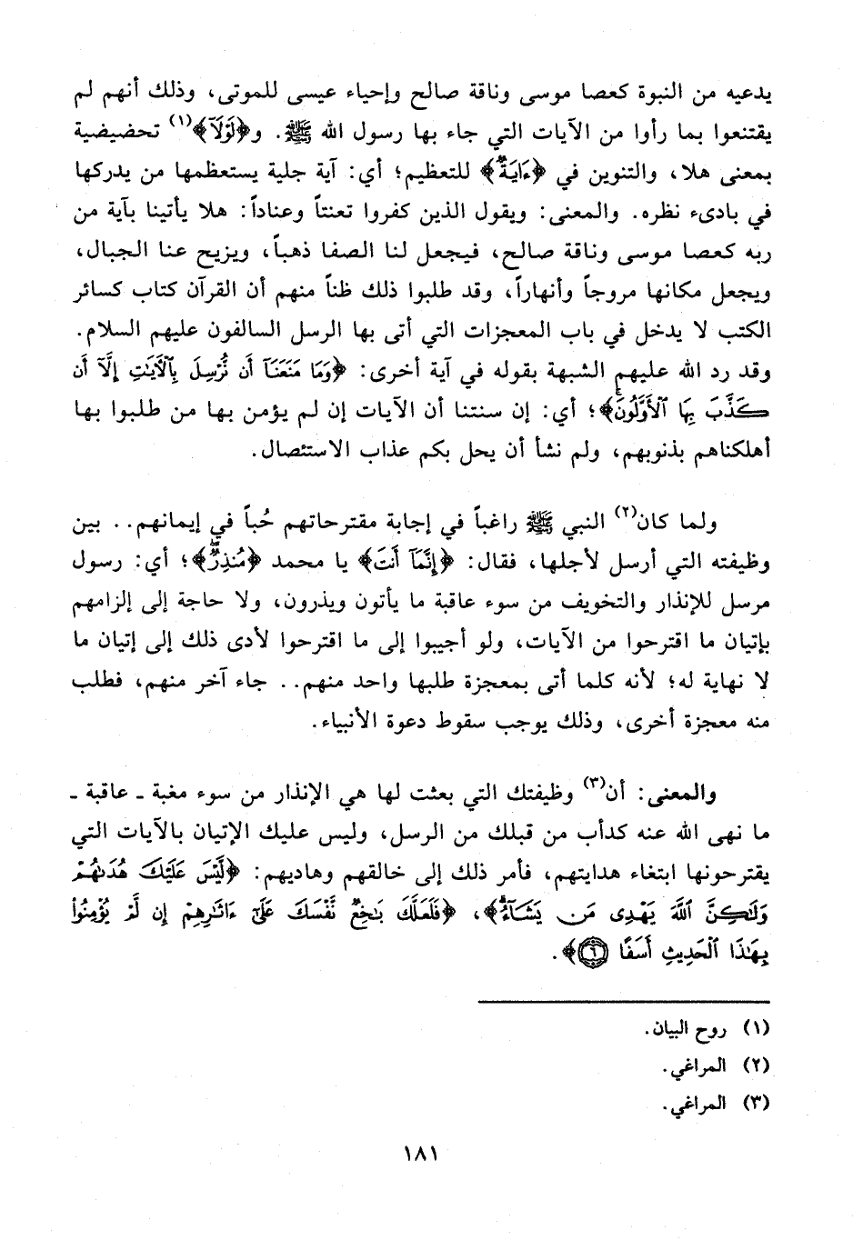 والمعنى: أن (¬3) وظيفتك التي بعثت لها هي الإنذار من سوء مغبة - عاقبة - ما نهى الله عنه كدأب من قبلك من الرسل، وليس عليك الإتيان بالآيات التي يقترحونها ابتغاء هدايتهم، فأمر ذلك إلى خالقهم وهاديهم: {لَيْسَ عَلَيْكَ هُدَاهُمْ وَلَكِنَّ اللَّهَ يَهْدِي مَنْ يَشَاءُ}، {فَلَعَلَّكَ بَاخِعٌ نَفْسَكَ عَلَى آثَارِهِمْ إِنْ لَمْ يُؤْمِنُوا بِهَذَا الْحَدِيثِ أَسَفًا (6)}.