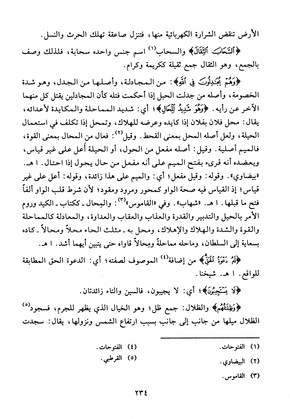{وَهُمْ يُجَادِلُونَ فِي اللَّهِ}: من المجادلة، وأصلها من الجدل، وهو شدة الخصومة، وأصله من جدلت الحبل إذا أحكمت فتله كأن المجادلين يقتل كل منهما الآخر عن رأيه. {وَهُوَ شَدِيدُ الْمِحَالِ}؛ أي: شديد المماحلة والمكايدة لأعدائه، يقال: محل فلان بفلان إذا كايده وعرضه للهلاك، وتمحل إذا تكلف في استعمال الحيلة، ولعل أصله المحل بمعنى القحط. وقيل (¬2): فعال من المحال بمعنى القوة، فالميم أصلية. وقيل: أصله مفعل من الحول، أو الحيلة أُعل على غير قياس، ويعضده أنه قرئ بفتح الميم على أنه مفعل من حال يحول إذا احتال. اهـ. "بيضاوي". وقوله: وقيل مفعل؛ أي: والميم على هذا زائدة، وقوله: أعل على غير قياس؛ إذ القياس فيه صحة الواو كمحور ومرود ومقود؛ لأنا شرط قلب الواو ألفًا فتح ما قبلها. اهـ. "شهاب". وفي "القاموس" (¬3): والمِحال - ككتاب - الكيد وروم الأمر بالحيل والتدبير والقدرة والعذاب والعقاب والعداوة، والمعادلة كالمماحلة والقوة والشدة والهلاك والإهلاك، ومحل به - مثلث الحاء محلًا ومحالًا - كاده بسعاية إلى السلطان، وماحله مماحلةً ومِحالًا قاواه حتى يتبين أيهما أشد. اهـ.