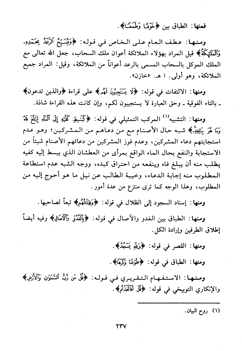 ومنها: الطباق بين الغدو والآصال في قوله: {بِالْغُدُوِّ وَالْآصَالِ} وفيه أيضًا إطلاق الطرفين وإرادة الكل.