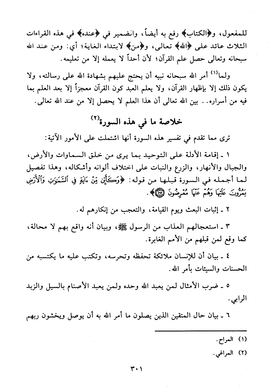 خلاصة ما في هذه السورة (¬2)