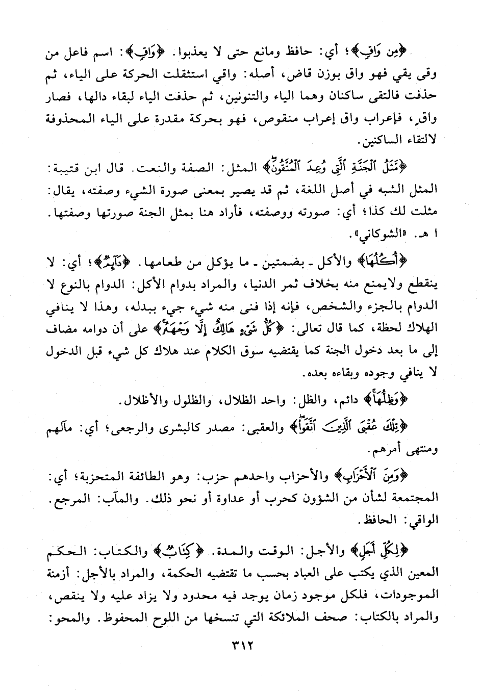 {وَمِنَ الْأَحْزَابِ} والأحزاب واحدهم حزب: وهو الطائفة المتحزبة؛ أي: المجتمعة لشأن من الشؤون كحرب أو عداوة أو نحو ذلك. والمآب: المرجع. الواقي: الحافظ.