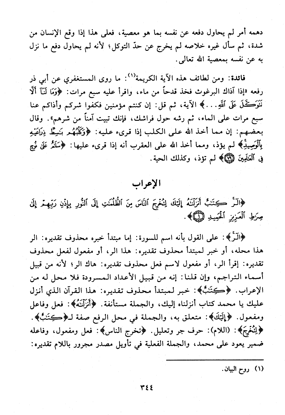 {الر كِتَابٌ أَنْزَلْنَاهُ إِلَيْكَ لِتُخْرِجَ النَّاسَ مِنَ الظُّلُمَاتِ إِلَى النُّورِ بِإِذْنِ رَبِّهِمْ إِلَى صِرَاطِ الْعَزِيزِ الْحَمِيدِ (1)}.