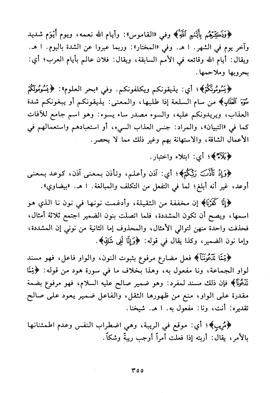 {وَذَكِّرْهُمْ بِأَيَّامِ اللَّهِ} وفي "القاموس": وأيام الله نعمه، ويوم أيْوَم شديد وآخر يوم في الشهر. اهـ. وفي "المختار": وربما عبروا عن الشدة باليوم. اهـ. ويقال: أيام الله وقائعه في الأمم السابقة، ويقال: فلان عالم بأيام العرب؛ أي: بحروبها وملاحمها.