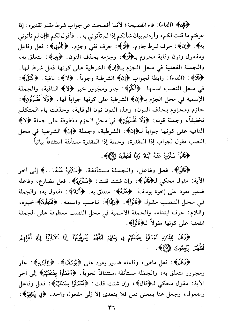 {فَإِنْ} (الفاء): فاء الفصيحة؛ لأنها أفصحت عن جواب شرط مقدر تقديره: إذا عرفتم ما قلت لكم، وأردتم بيان شأنكم إذا لم تأتوني به .. فأقول لكم {إن لم تأتوني به}: {إن}: حرف شرط جازم. {لَمْ}: حرف نفي وجزم {تَأْتُونِي}: فعل وفاعل ومفعول ونون وقاية مجزوم بـ {لَمْ}، وجزمه بحذف النون. {بِهِ}: متعلق به، والجملة الفعلية في محل الجزم بـ {إن} الشرطية على كونها فعل شرط لها. {فَلَا}: (الفاء): رابطة لجواب {إن} الشرطية وجوبًا. {لا}: نافية. {كَيْلَ}: في محل النصب اسمها. {لَكُمْ}: جار ومجرور خبر {لا} النافية، والجملة الاسمية في محل الجزم بـ {إن} الشرطية على كونها جوابًا لا. {وَلَا تَقْرَبُونِ}: جاز ومجزوم بحذف النون، وهذه النون نون الوقاية، وحذفت ياء المتكلم تخفيفًا، وجملة قوله: {وَلَا تَقْرَبُونِ} في محل الجزم معطوفة على جملة {لا} النافية على كونها جوابًا لـ {إن}: الشرطية، وجملة {إن} الشرطية في محل النصب مقول لجواب إذا المقدرة، وجملة إذا المقدرة مستأنفة استئنافًا بيانيًّا.