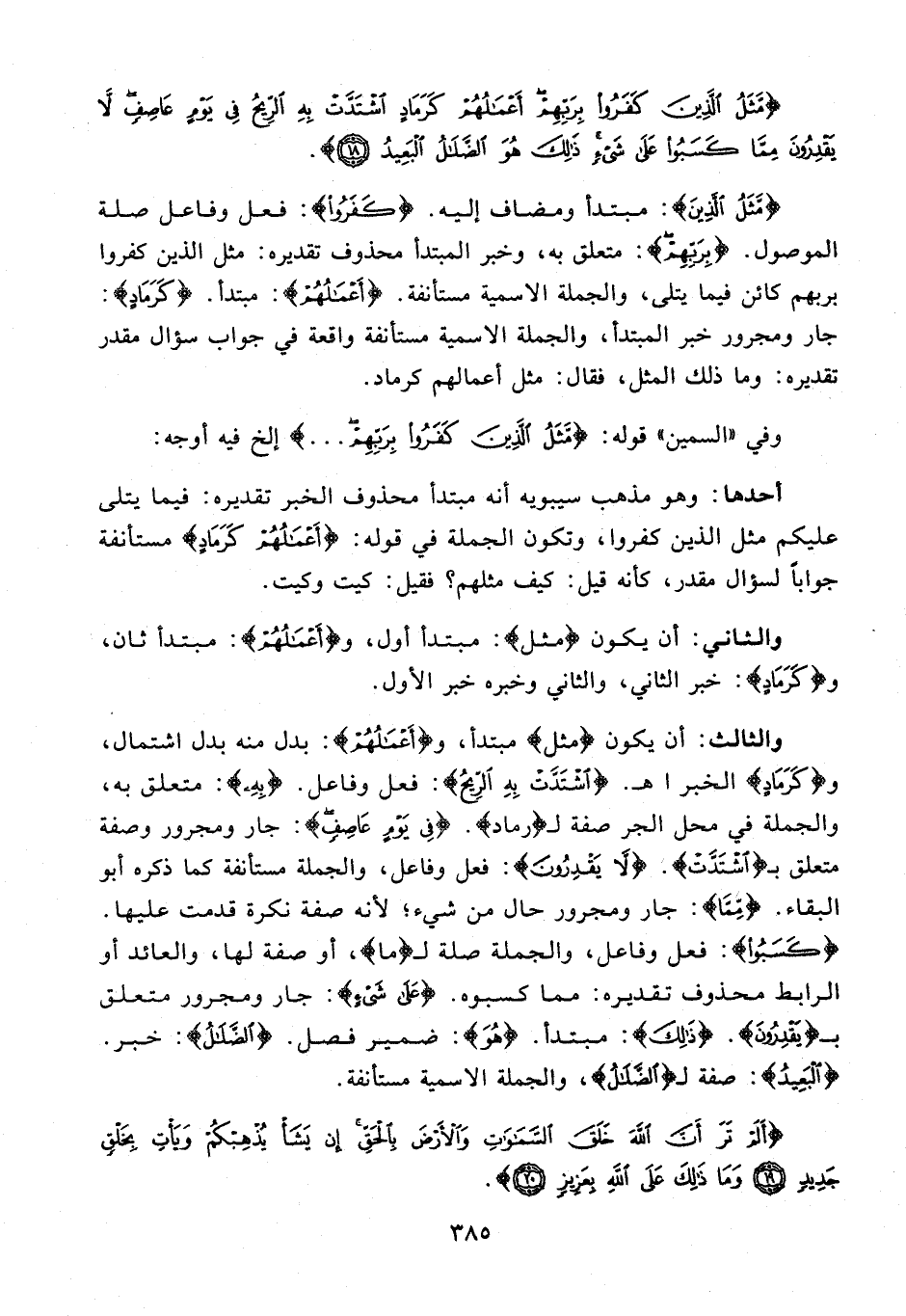 وفي "السمين" قوله: {مَثَلُ الَّذِينَ كَفَرُوا بِرَبِّهِمْ ...} إلخ فيه أوجه: