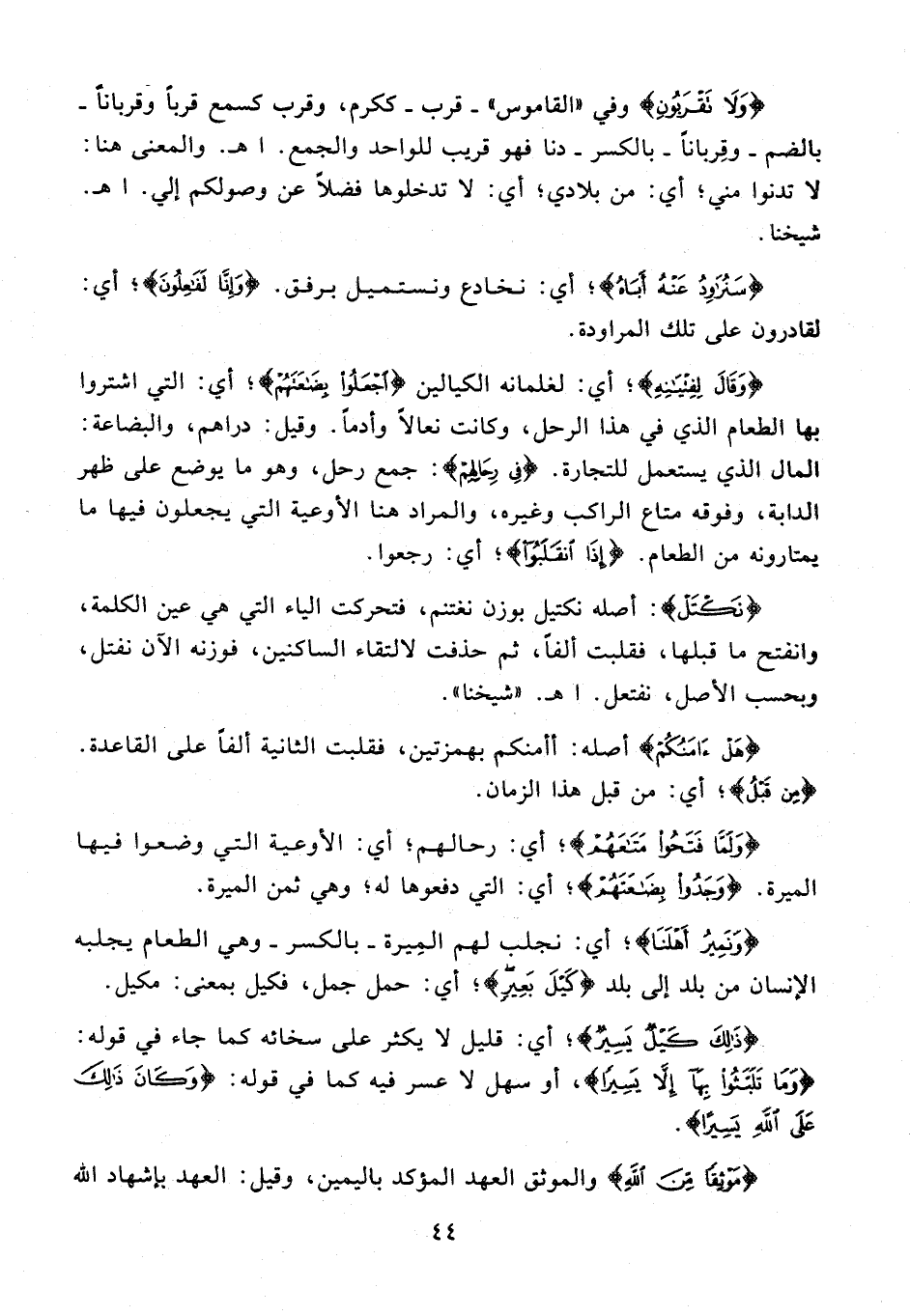 {وَلَا تَقْرَبُونِ} وفي القاموس - قرب - ككرم، وقرب كسمع قربًا وقربانًا - بالضم - وقِربانًا - بالكسر - دنا فو قريب للواحد والجمع. اهـ. والمعنى هنا: لا تدنوا مني؛ أي: من بلادي؛ أي: لا تدخلوها فضلًا عن وصولكم إلي. اهـ. شيخنا.
