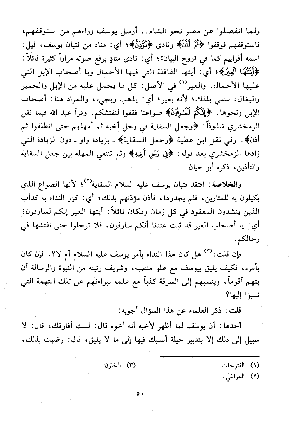 فإن قلت: (¬3) هل كان هذا النداء بأمر يوسف عليه السلام أم لا؟، فإن كان بأمره، فكيف يليق بيوسف مع علو منصبه، وشريف رتبته من النبوة والرسالة أن يتهم أقومًا، وينسبهم إلى السرقة كذبًا مع علمه ببراءتهم عن تلك التهمة التي نسبوا إليها؟
