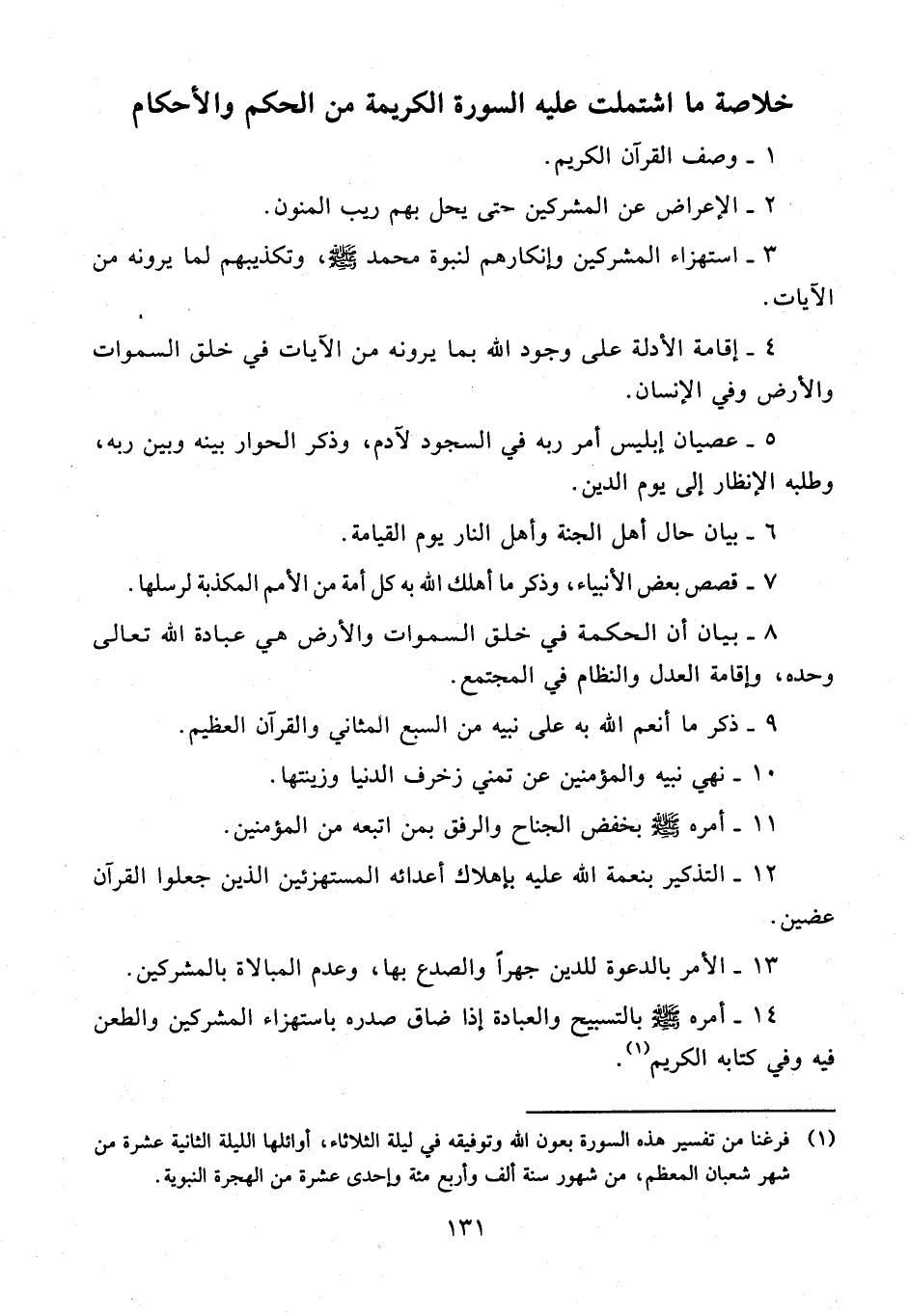 خلاصة ما اشتملت عليه السورة الكريمة من الحكم والأحكام