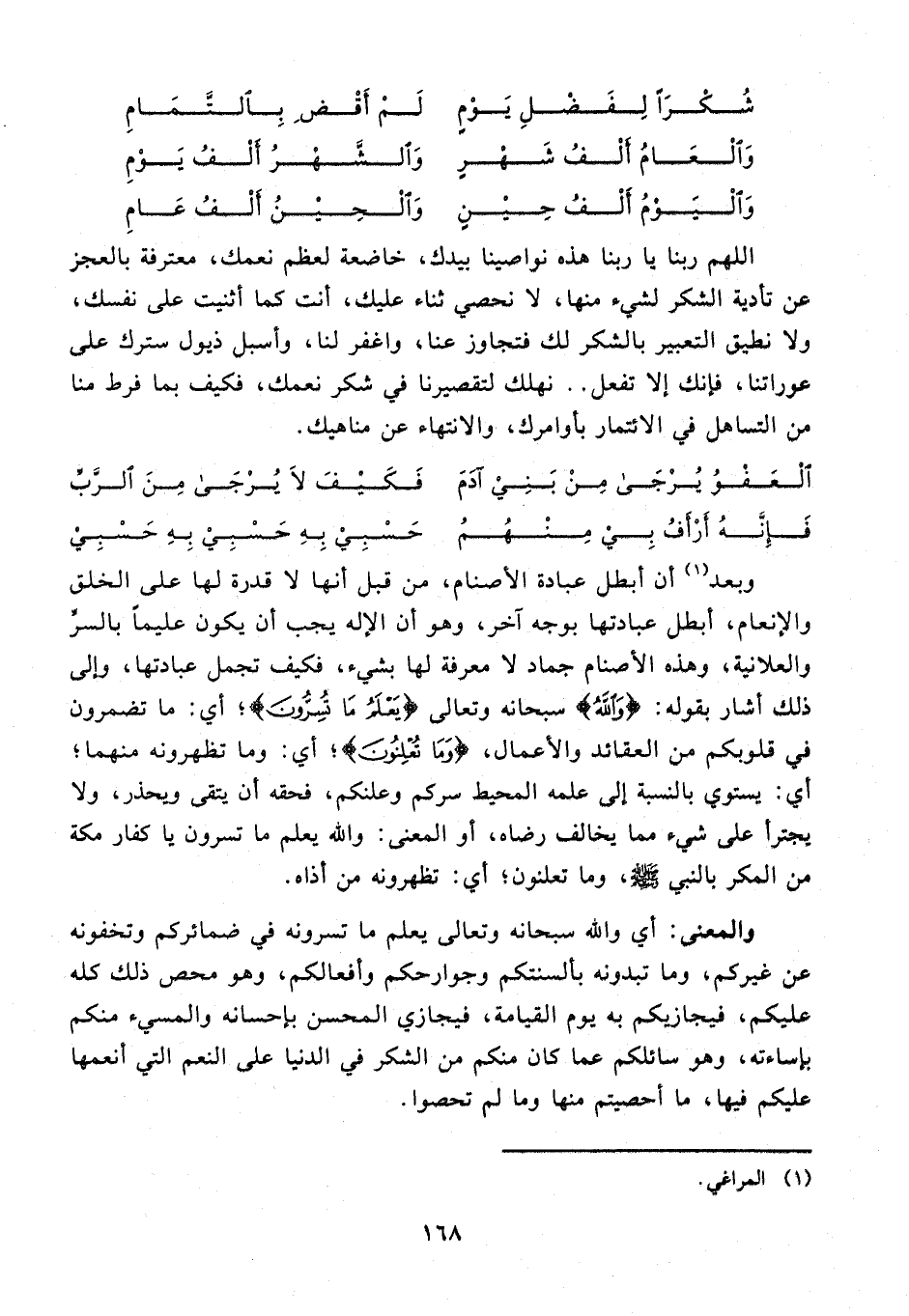 اللهم ربنا يا ربنا هذه نواصينا بيدك، خاضعة لعظم نعمك، معترفة بالعجز عن تأدية الشكر لشيء منها، لا نحصي ثناء عليك، أنت كما أثنيت على نفسك، ولا نطيق التعبير بالشكر لك فتجاوز عنا، واغفر لنا، وأسبل ذيول سترك على عوراتنا، فإنك إلا تفعل .. نهلك لتقصيرنا في شكر نعمك، فكيف بما فرط منا من التساهل في الائتمار بأوامرك، والانتهاء عن مناهيك.