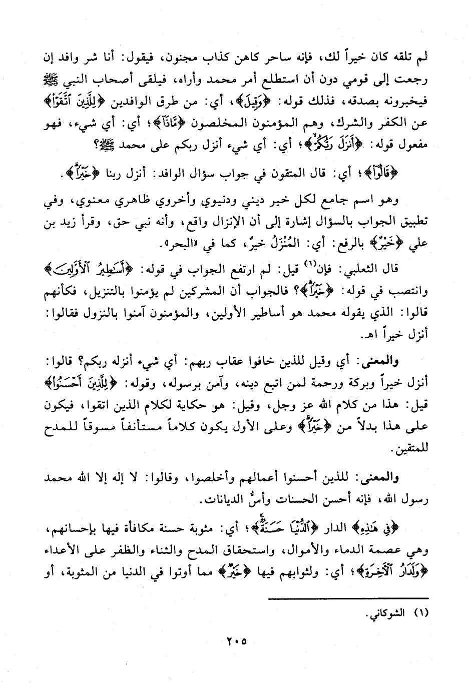 قال الثعلبي: فإن (¬1) قيل: لم ارتفع الجواب في قوله: {أَسَاطِيرُ الْأَوَّلِينَ} وانتصب في قوله: {خَيْرًا}؟ فالجواب أن المشركين لم يؤمنوا بالتنزيل، فكأنهم قالوا: الذي يقوله محمد هو أساطير الأولين، والمؤمنون آمنوا بالنزول فقالوا: أنزل خيرًا اهـ.