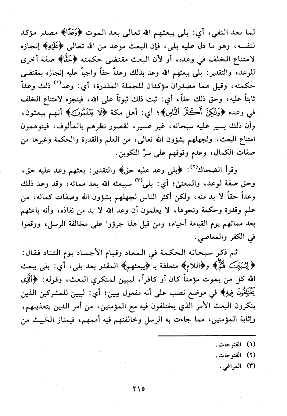 39 - ثم ذكر سبحانه الحكمة في المعاد وقيام الأجساد يوم التناد فقال: {لِيُبَيِّنَ لَهُمُ} و {اللام} متعلقة بـ {يبعثهم} المقدر بعد بلى، أي: بلى يبعث الله كل من يموت مؤمنًا كان أو كافرًا، ليبين لمنكري البعث، وقوله: {الَّذِي يَخْتَلِفُونَ فِيهِ} في موضع نصب على أنه مفعول يبين؛ أي: ليبين للمشركين الذين ينكرون البعث الأمر الذي يختلفون فيه مع المؤمنين، من أمر الدين بتعذيبهم، وإثابة المؤمنين، مما جاءت به الرسل وخالفتهم فيه أممهم، فيمتاز الخبيث من