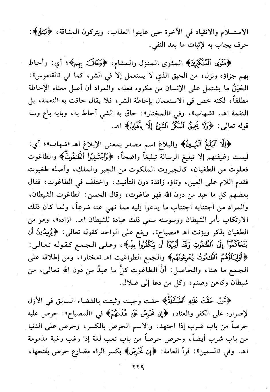 {إِلَّا الْبَلَاغُ الْمُبِينُ} والبلاغ اسم مصدر بمعنى الإبلاغ اهـ "شهاب"؛ أي: ليست وظيفتهم إلا تبليغ الرسالة تبليغًا واضحًا، {وَاجْتَنِبُوا الطَّاغُوتَ} والطاغوت فعلوت من الطغيان، كالجبروت الملكوت من الجبر والملك، وأصله طغيوت فقدم اللام على العين، وتاؤه زائدة دون التأنيث، واختلف في الطاغوت، فقال بعضهم كل ما عبد من دون الله فهو طاغوت، وقال الحسن: الطاغوت الشيطان، والمراد من اجتنابه اجتناب ما يدعوا إليه مما نهي عنه شرعًا، ولما كان ذلك الارتكاب بأمر الشيطان ووسوسته سمي ذلك عبادة للشيطان اهـ. "زاده"، وهو من الطغيان يذكر ويؤنث اهـ "مصباح"، ويقع على الواحد كقوله تعالى: {يُرِيدُونَ أَنْ يَتَحَاكَمُوا إِلَى الطَّاغُوتِ وَقَدْ أُمِرُوا أَنْ يَكْفُرُوا بِهِ}، وعلى الجمع كقوله تعالى: {أَوْلِيَاؤُهُمُ الطَّاغُوتُ يُخْرِجُونَهُمْ} والجمع الطواغيت اهـ "مختار"، ومن إطلاقه على الجمع ما هنا، والحاصل: أنَّ الطاغوت كلُّ ما عبدُ من دون الله تعالى، من شيطان وكاهن وصنم، وكل من دعا إلى ضلال.
