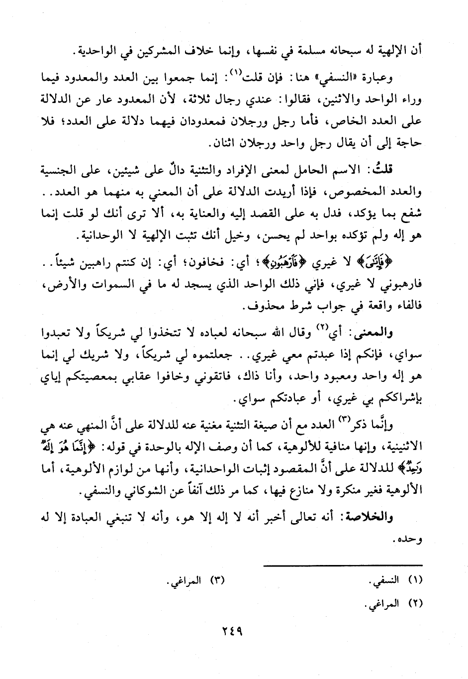 وإنَّما ذكر (¬3) العدد مع أن صيغة التثنية مغنية عنه للدلالة على أنَّ المنهي عنه هي الاثنينية، وإنها منافية للألوهية، كما أن وصف الإله بالوحدة في قوله: {إنَّمَا هُوَ إِلَهٌ وَاحِدٌ} للدلالة على أنَّ المقصود إثبات الواحدانية، وأنها من لوازم الألوهية، أما الألوهية فغير منكرة ولا منازع فيها، كما مر ذلك آنفًا عن الشوكاني والنسفي.